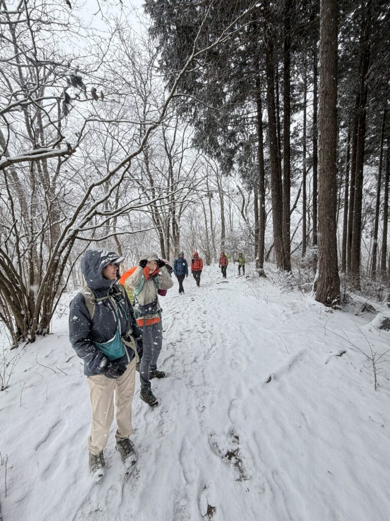 前回の雨に引き続き、楽しくワイワイ、、、雪の中をハイキング~!!